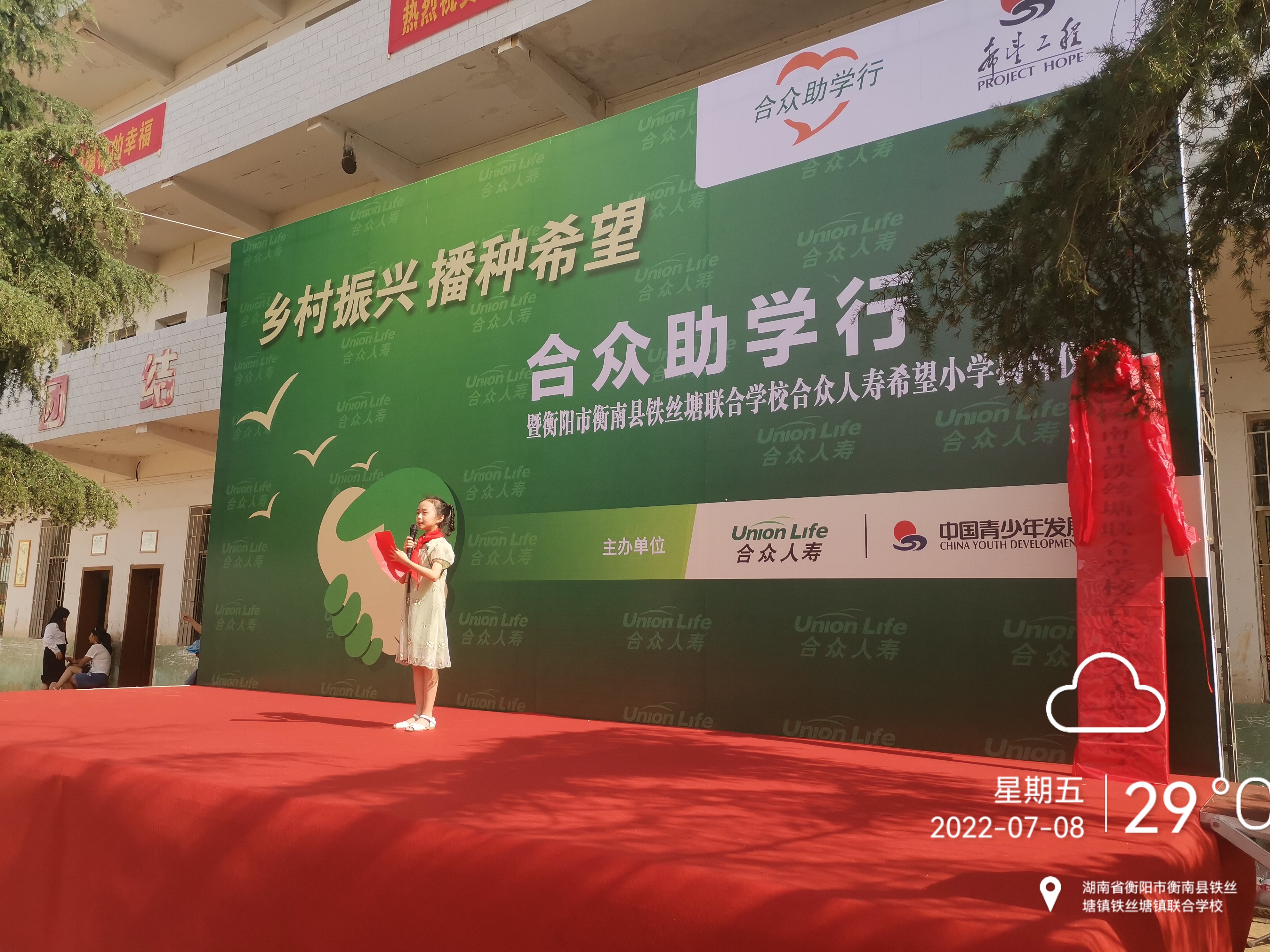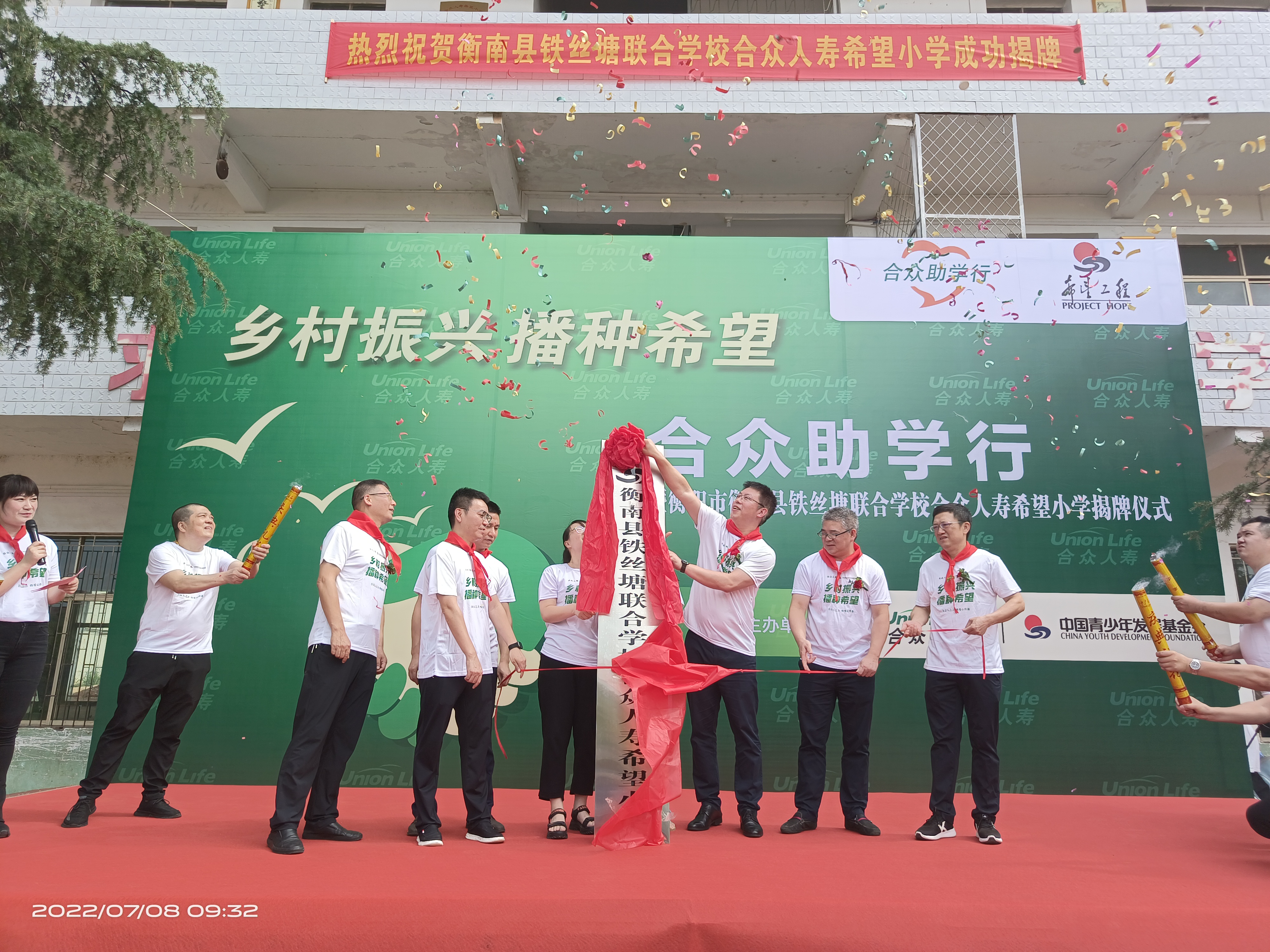 在“7.8全國保險公眾宣傳日”這個特殊的日子里,第八所合眾人壽希望小學——湖南省衡陽市“衡南縣鐵絲塘聯合學校合眾人壽希望小學”正式揭牌。衡陽市銀保監分局、衡陽市保險行業協會、衡南縣教育局相關領導親臨現場,共同為合眾人壽希望小學揭牌。衡陽市電視臺、衡陽日報等媒體對活動全程進行了現場報道。